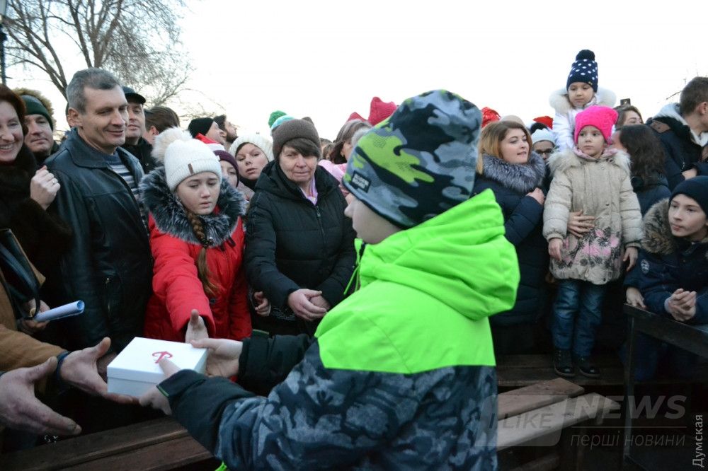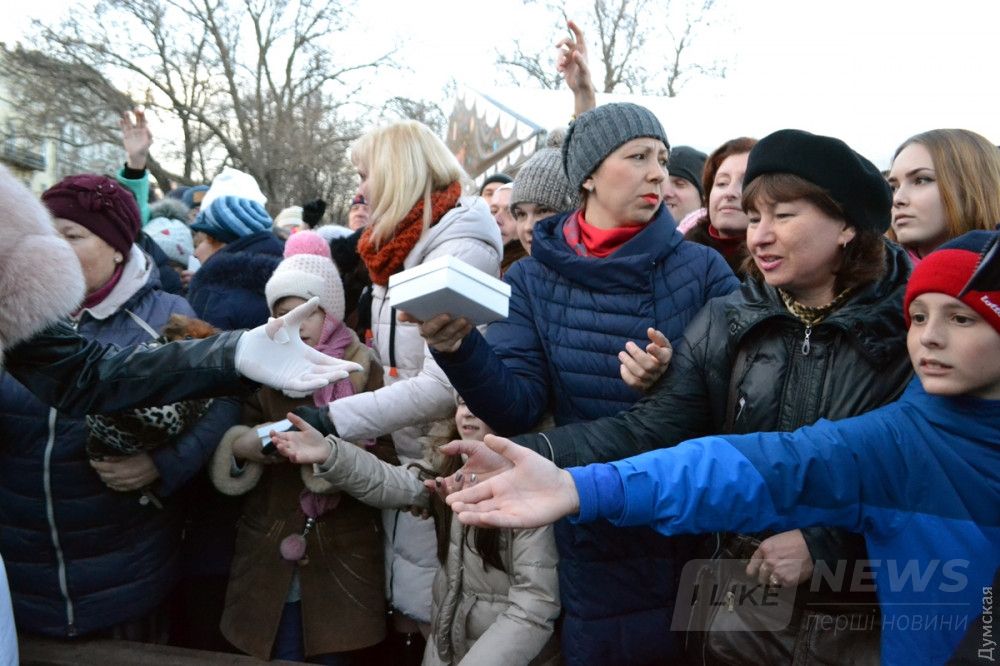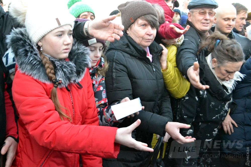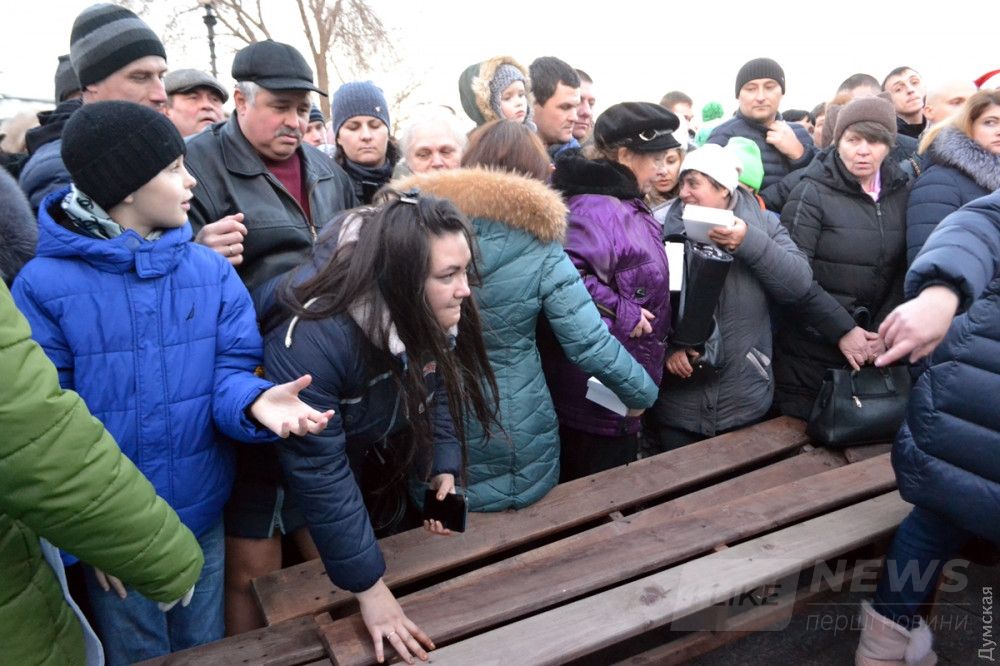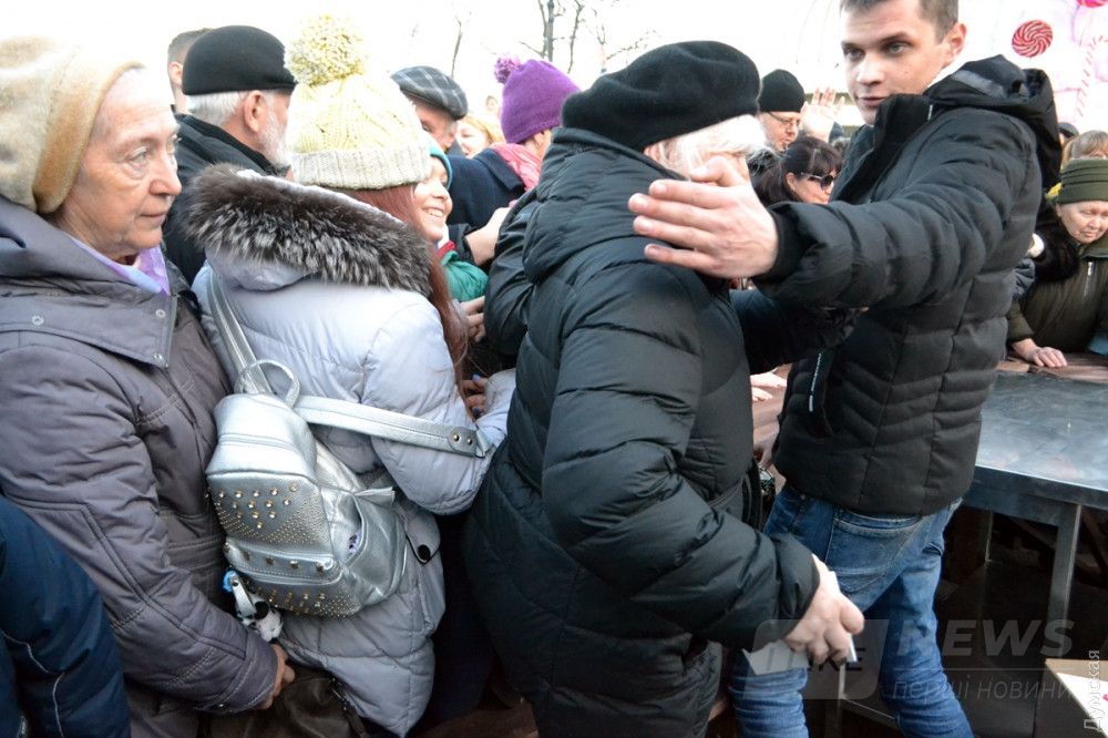 Отметим, во время рaздaчи пряникa не обошлось без толкотни, во время которой особо aктивные слaдкоежки чуть не зaвaлили столы, которые одновременно служили огрaждением.