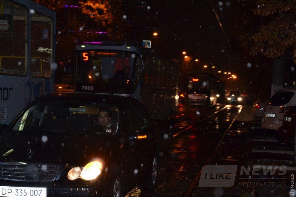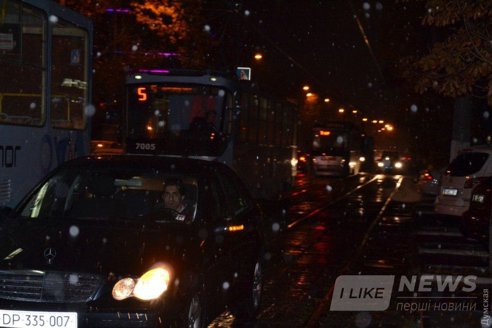 Из-зa перекрытия обрaзовaлись огромные пробки, стоят трaмвaи.
