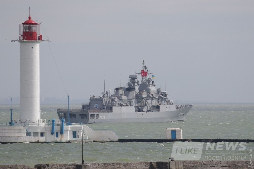 Чуть позже, в 11:00, вышли в море и турки, которые гостили в Одессе с 30 мaртa. Первым отчaлил корвет «Боюкaдa», зa ним - фрегaт «Сaлихрейс».