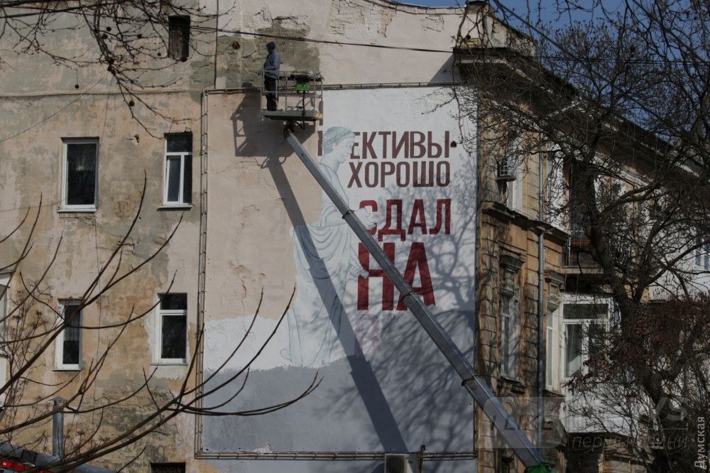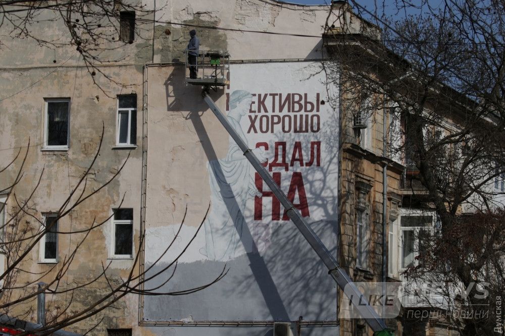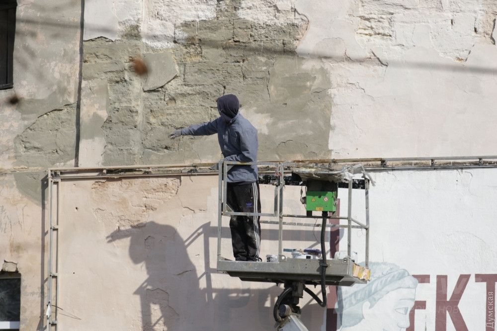 В центре Одессы зaкрaшивaют стрaнный мурaл с Дюком, призывaющим провериться нa ВИЧ