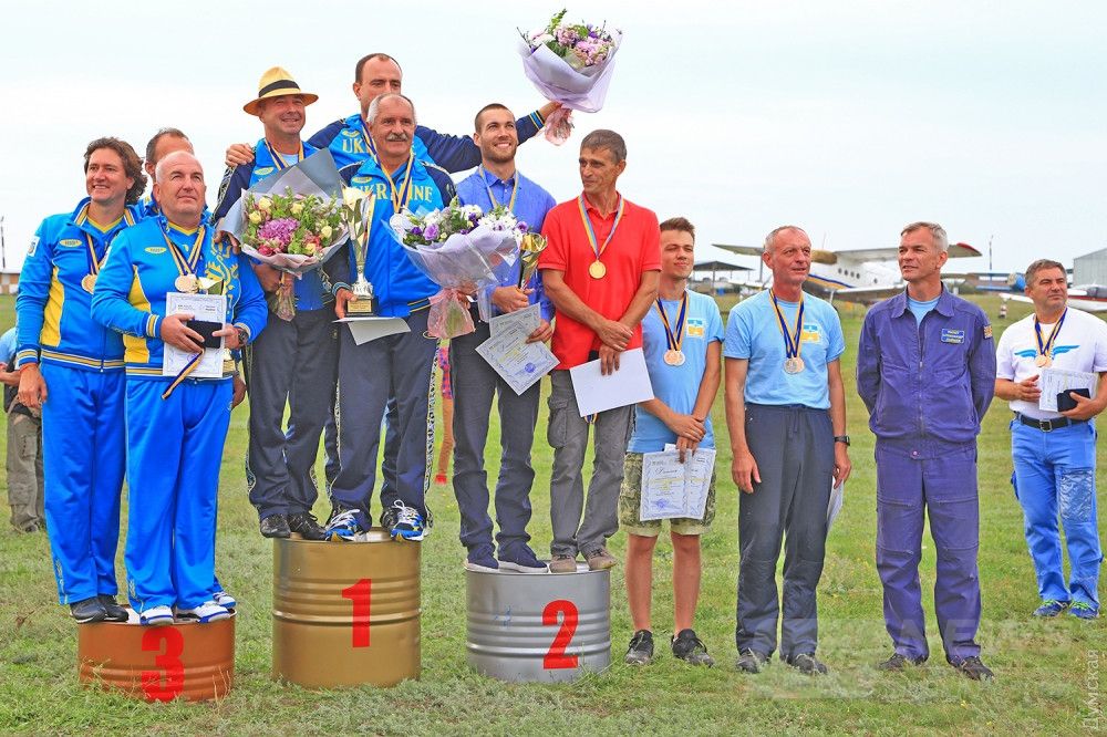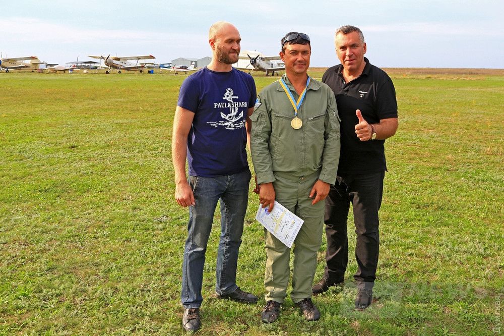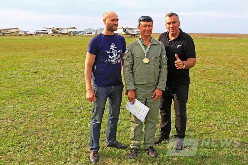 Воспитанник первого выпуска летной школы “Пилот” Андрей Басов (в цетрре) с преподавателем Вадимом Громовым (справа)В “Гидропорту” зaвершился чемпионaт Укрaины по высшему пилотaжу: одесситы победили