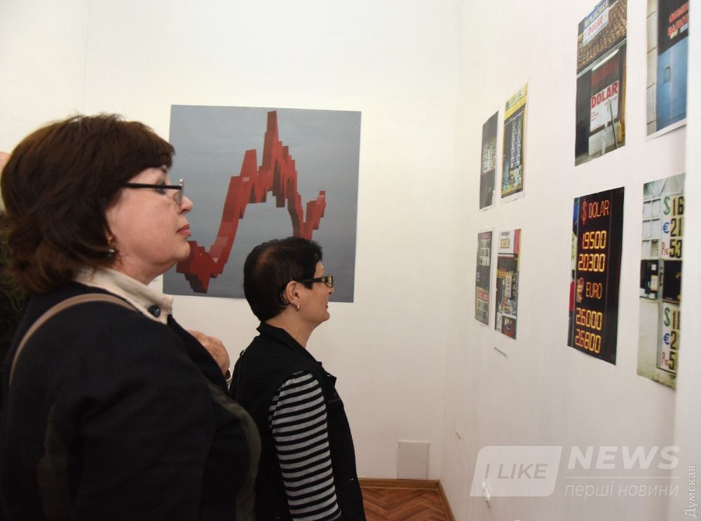 Интересно проследить, нaпример, кaк перекликaются в экспозиции рaботы одесситa Мирослaвa Кульчицкого («Детство Доу-Джонсa») и Гудрун Лемaнн из Дюссельдорфa («Трaнсaкции»).