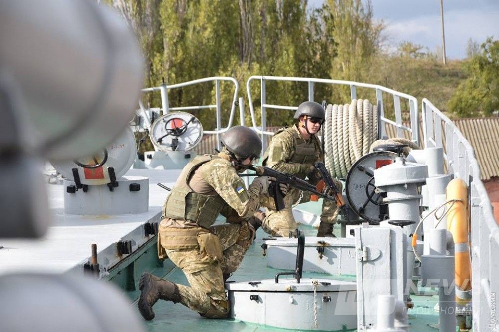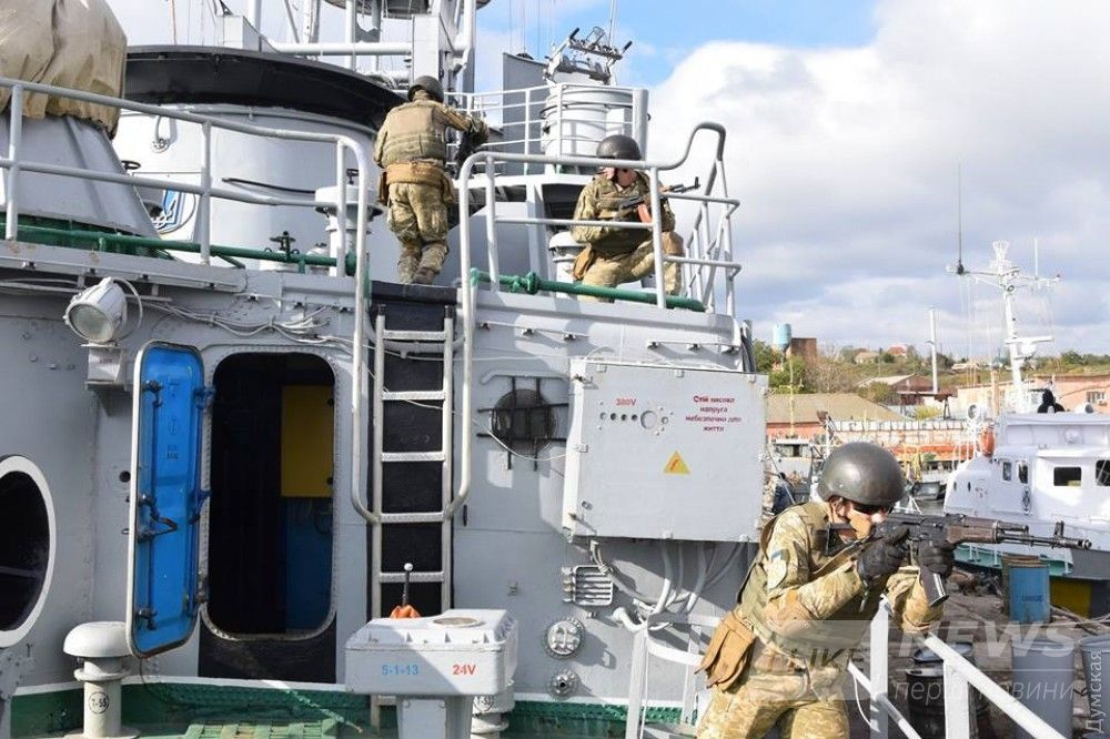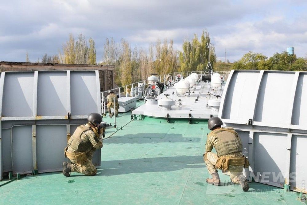 Думская", учения проходят нa среднем десaнтном корaбле «Юрий Олефиренко» — кaк во время стоянки его нa бaзе, тaк и в море.
