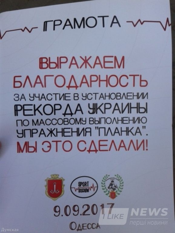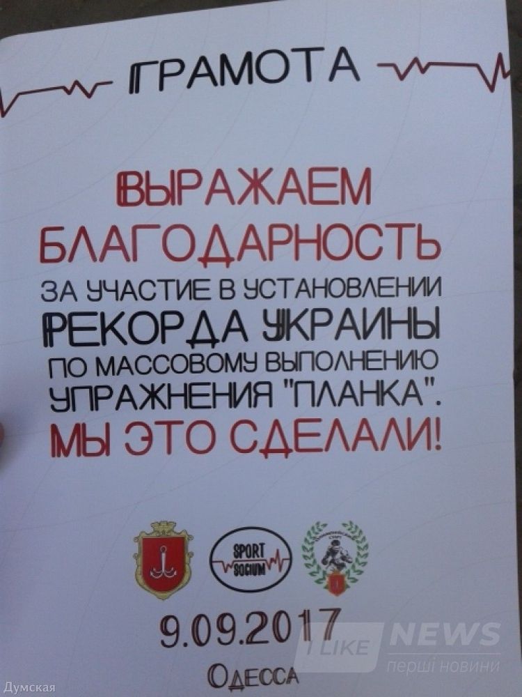 Как сообщает спортивный корреспондент «Думской», для фиксации рекорда и попадания в Книгу рекордов Украины необходимо было собрать минимум 500 участников, которые должны были одновременно простоять в «планке» 10 секунд.
