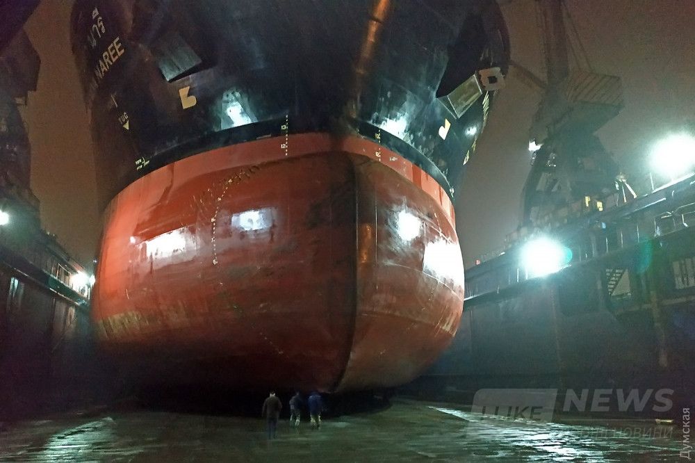 В Одесской области судоремонтный завод экстренно принял в свой док «тайский» балкер, получивший повреждения в порту загрузки