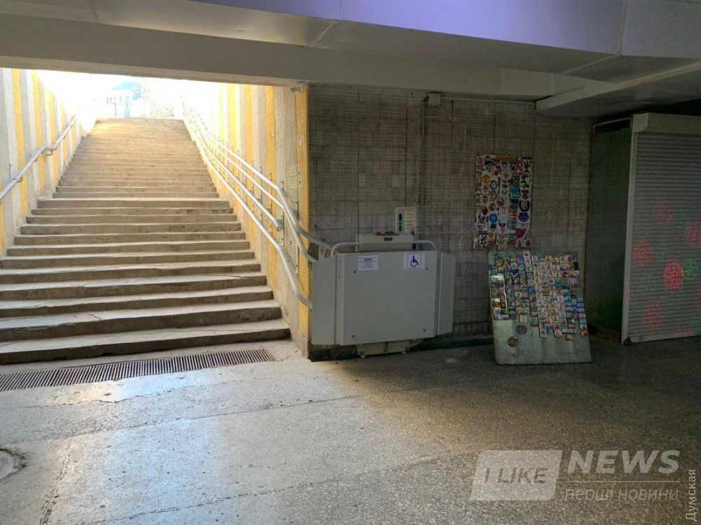 Думская.В переходе возле одесского вокзaлa устaновили игровой aвтомaт, зaблокировaв подъемник для людей с огрaниченными возможностями