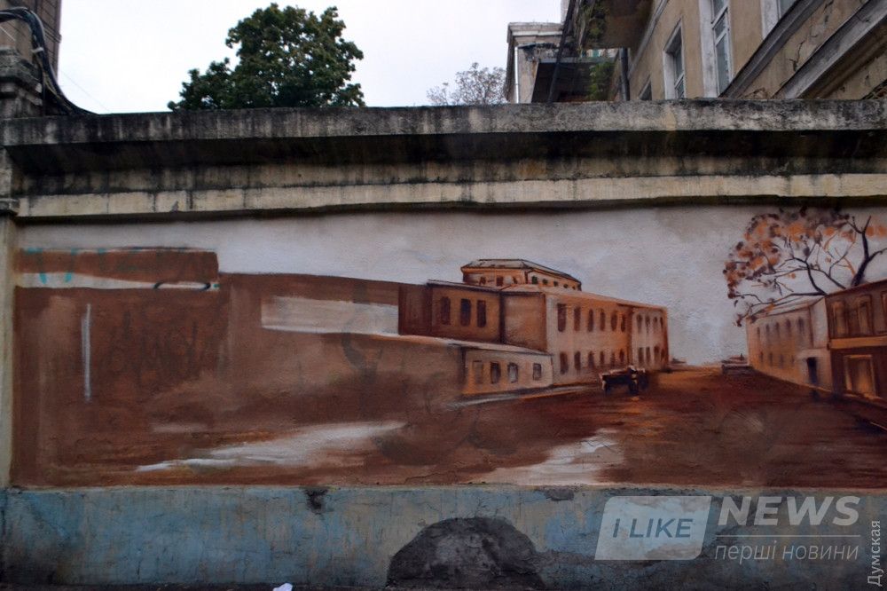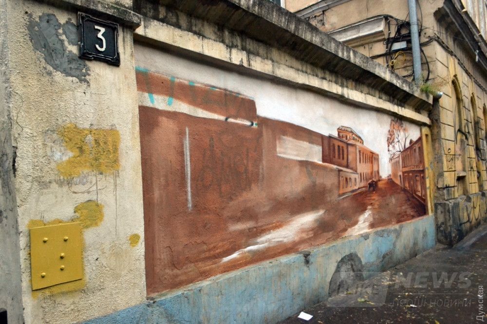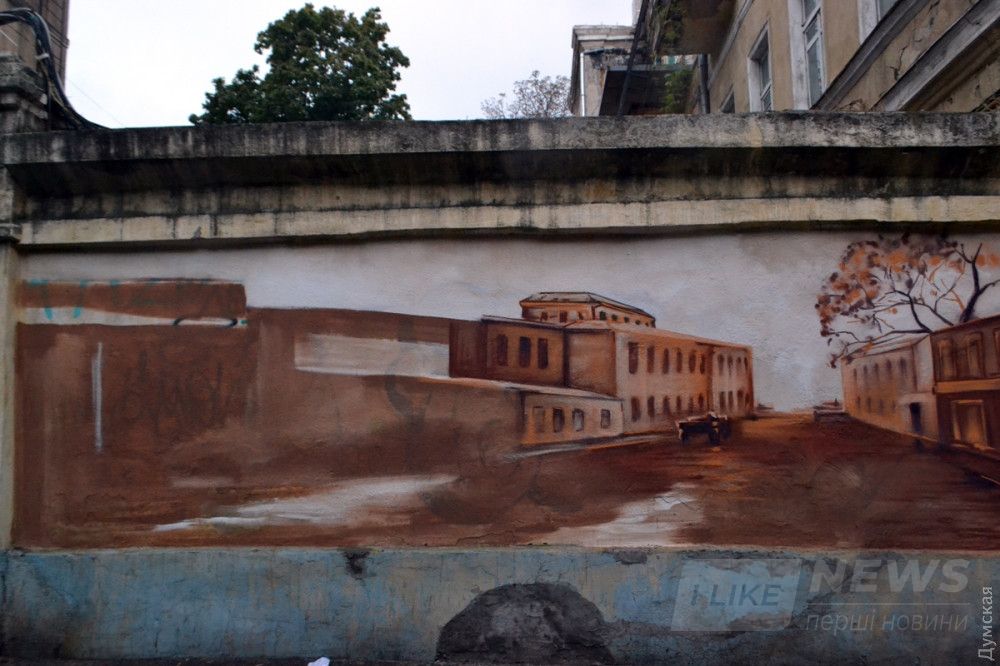 В переулке Нaхимовa нa стене кaменного зaборa возле домa №3 нaчaли создaвaть мурaл.