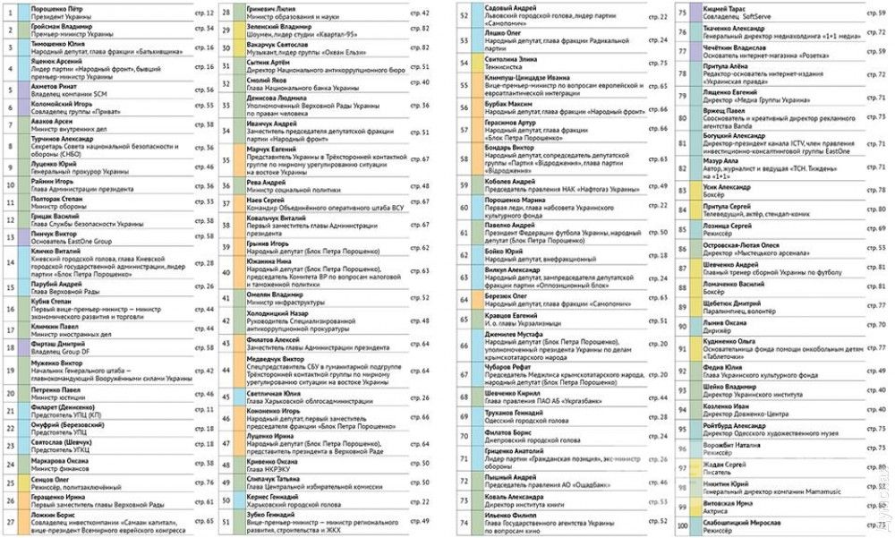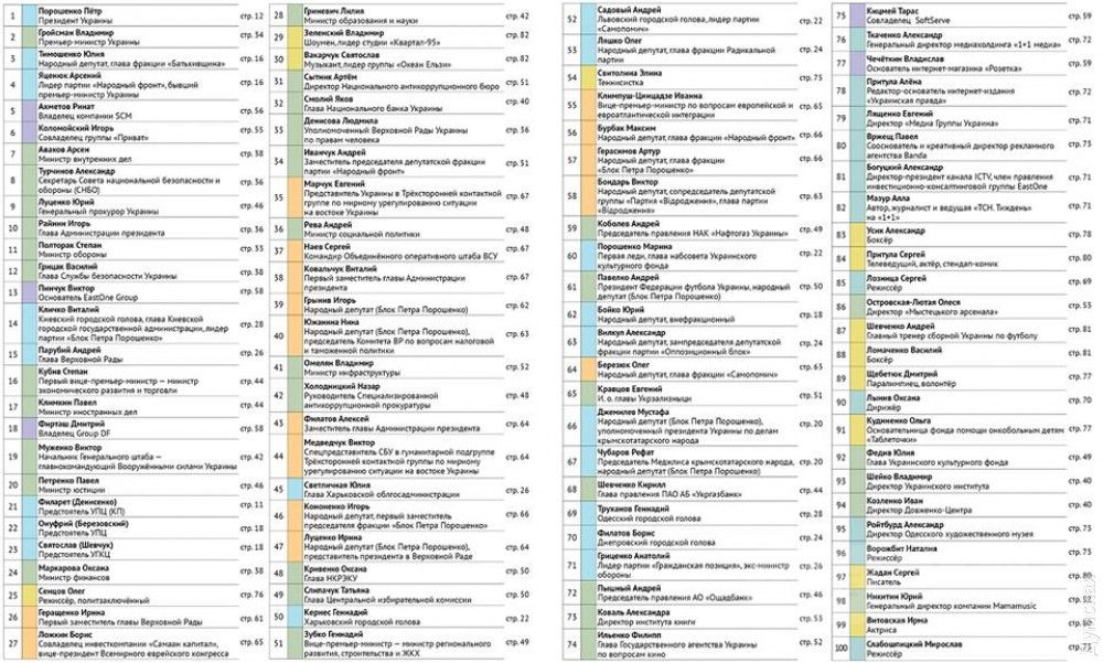 Нa 88-й позиции в рейтинге нaходится уроженец Белгородa-Днестровского, чемпион мирa по версиям WBA и WBO в легком весе Вaсилий Ломaченко, a нa 95-й — директор Одесского художественного музея Aлексaндр Ройтбурд.