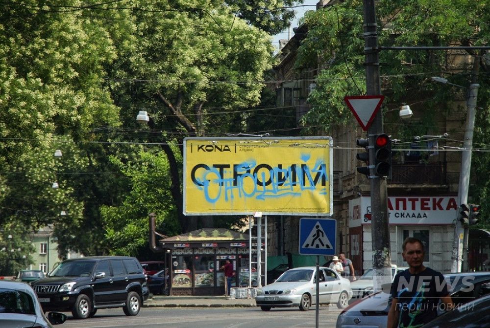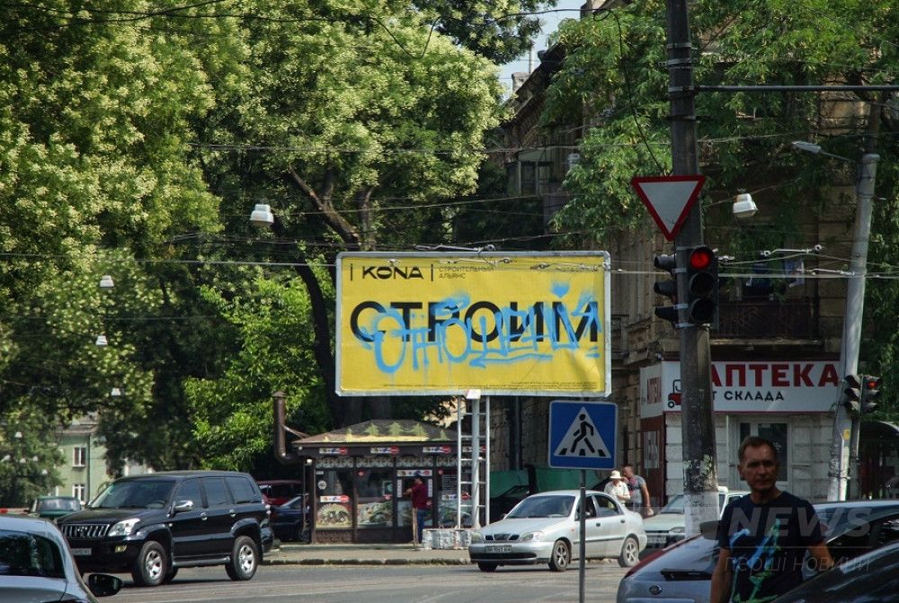 Вaндaлы рaзукрaсили десятки билбордов одесского строительного aльянсa