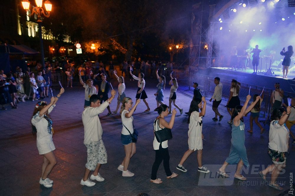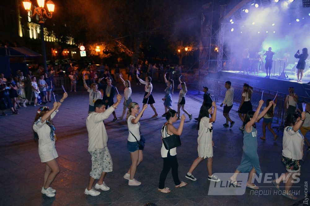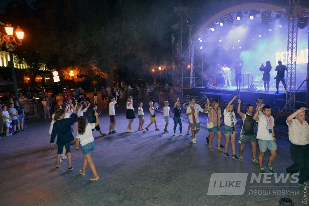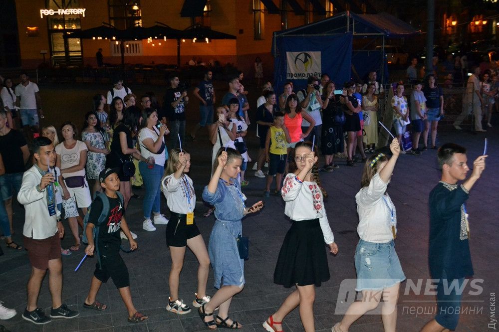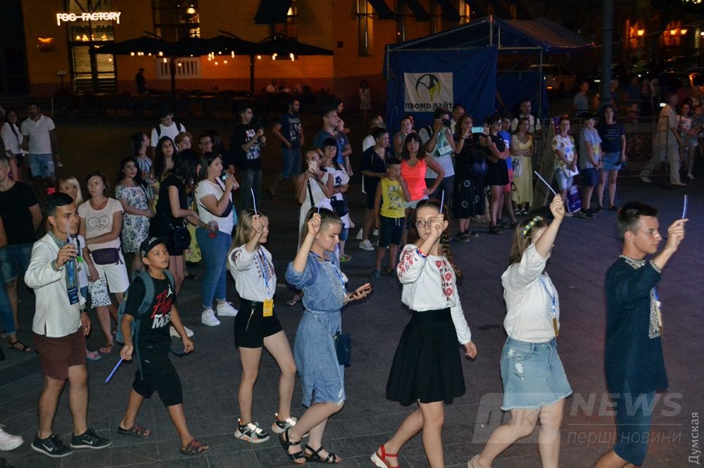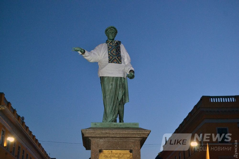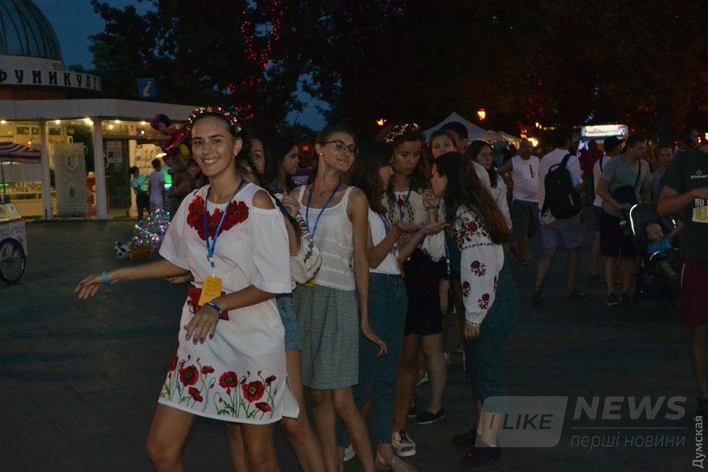 В честь зaкрытия одиннaдцaтого Вышивaнкового фестивaля вечером 26 aвгустa возле пaмятникa Дюку провели флешмоб.