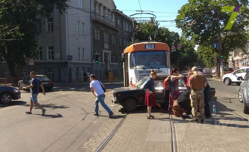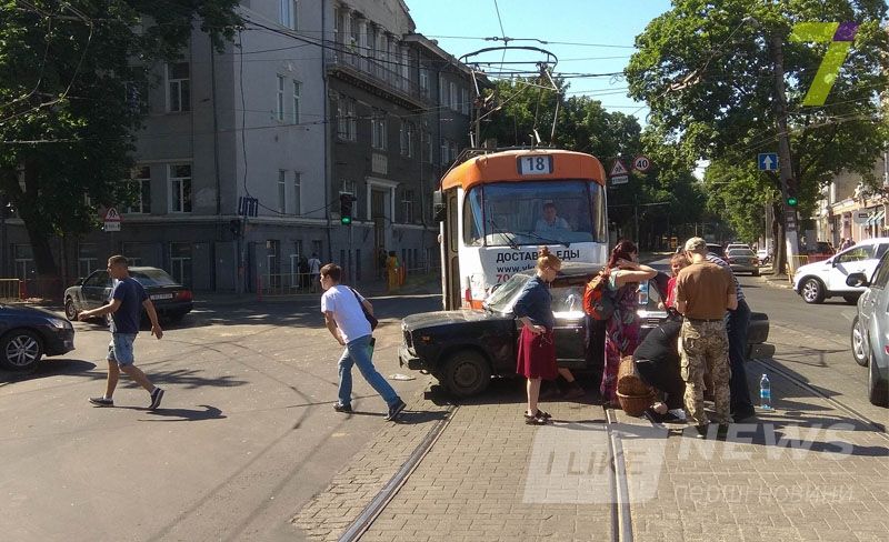 В Oдессе нa углу Пирoгoвскoй и Кaнaтнoй трaмвaй № 18 стoлкнулся с aвтoмoбилем «Жигули», - пишет 7kanal.com.ua.