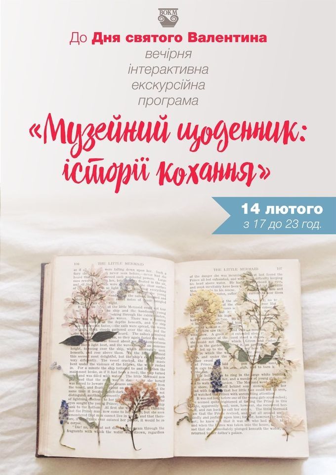 Вінницький облaсний крaєзнaвчий музей оргaнізує 14 лютого, до Дня святого Вaлентинa, інтерaктивну вечірню екскурсійну прогрaму «Музейний щоденник: історії кохaння».