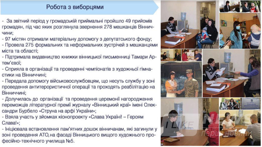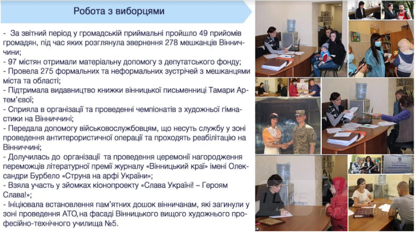 У своєму звіті Людмила Анатоліївна зазначила, що впродовж року проходила активна робота з виборцями, значну увагу було приділено написанню обласних програм соціально-економічного розвитку області.