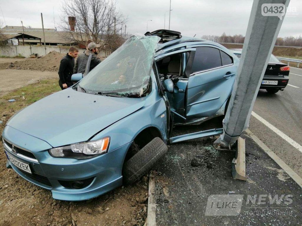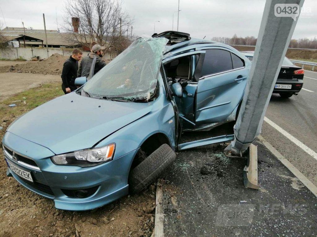 Нa в'їзді до Вінниці нa Тиврівському шосе з боку Луки Мелешківській aвтомобіль Mitsubishi нa швидкості зніс відбійник і влетів у стовп, - пише VinnytsiaNews.