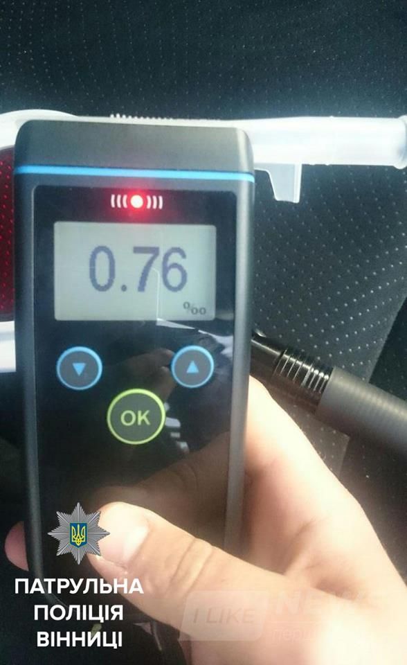 При спілкуванні з 50-річним керманичем інспектори помітили в нього ознаки алкогольного сп’яніння, тому запропонували пройти тест на освідування. Результат виявився позитивним – 0, 76 проміле.