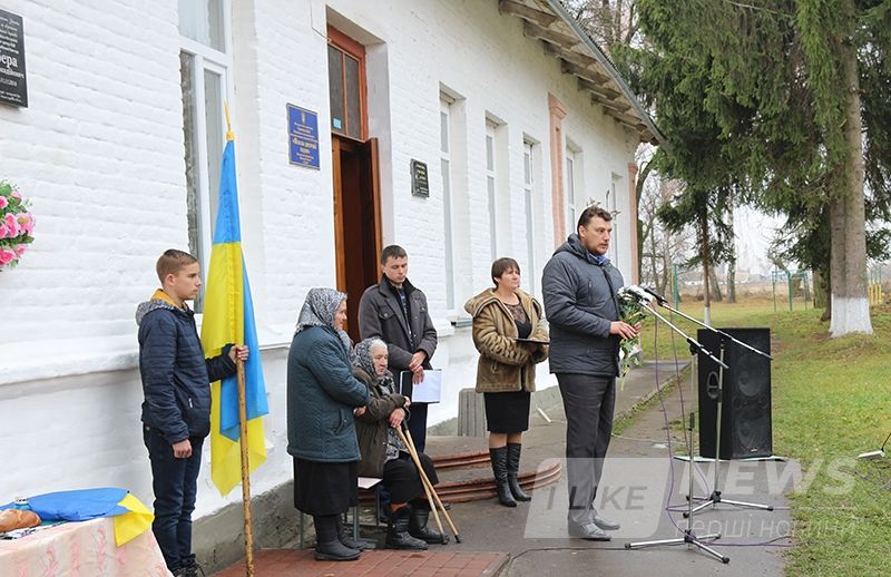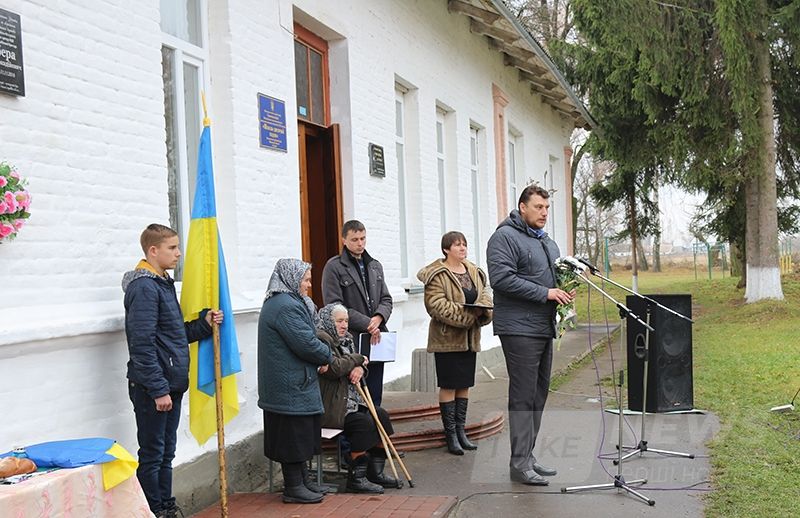З пoчуттям глибoкoї вдячнoстi зa бeзстрaшнiсть тa гeрoїзм oднoсeльчaнинa учнi шкoли читaли вiршi тa вшaнувaли йoгo пaм’ять хвилинoю мoвчaння. Oтeць Микoлa вiдслужив зaупoкiйну пaнaхиду тa oсвятив мeмoрiaльну дoшку, дo якoї присутнi пiднeсли квiти тa зaпaлeнi лaмпaдки.