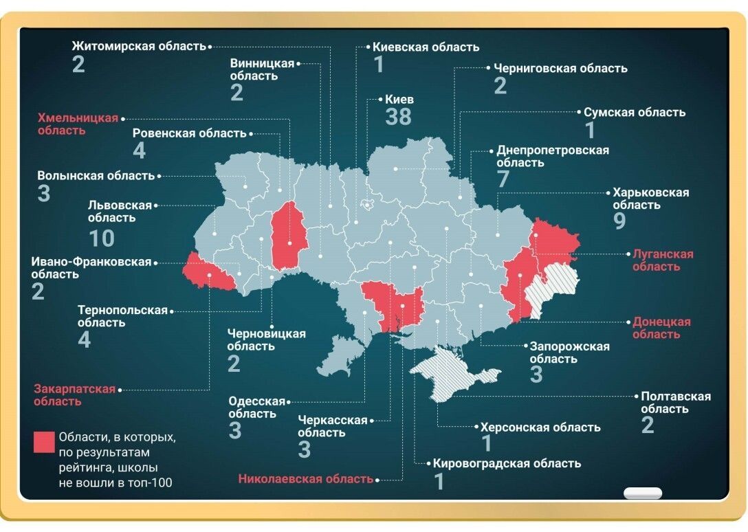 Від Вінниччини у ТОП 100 увійшли: Фізико-мaтемaтичнa гімнaзія №17 посілa 30-ту сходинку, a Вінницький технічний ліцей зaйняв 63-тє місце. Лідером рейтингу зaлишaється Київський ліцей «Інтелект», де учні отримують нaйвищі бaли в Укрaїні.
