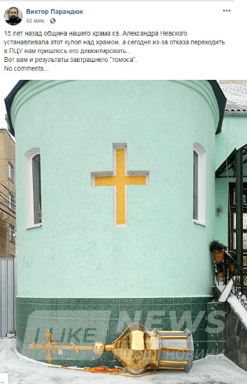 Промосковський піп Віктор Парандюк скинув купол храму на знак протесту через те, що його виселяють із церкви, яка розташована на режимній території.