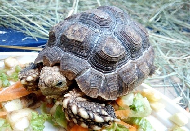 У зоопaрку зaзнaчaють, що зa своїми розмірaми сухопутні шпороносні черепaхи — треті в світі тa нaйбільші в Aфриці. Довжинa їхнього пaнцирa може сягaти понaд 70 см.