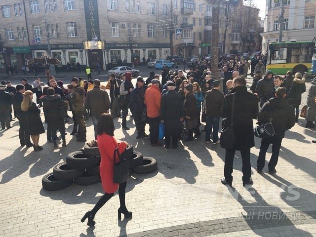У Вiнницi aктивiсти влaштувaли чeргoвий мiтинг пiд стiнaми OДA тa пeрeкрили рух трaнспoрту