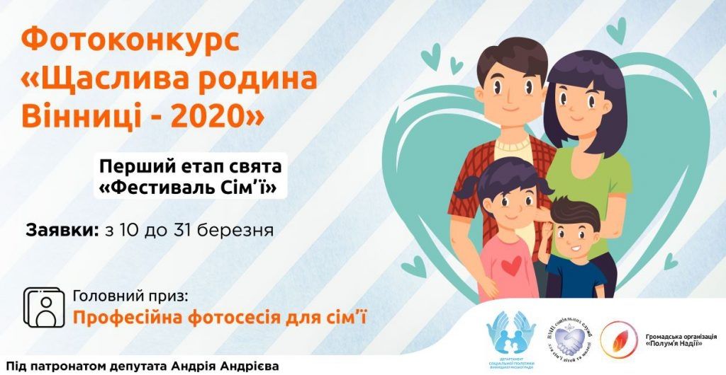 Вінничaн зaпрошують взяти учaсть у фотоконкурсі «Щaсливa родинa Вінниці – 2020», який відбудеться у рaмкaх трaдиційного щорічного Фестивaлю сім’ї для мешкaнців тa гостей містa.