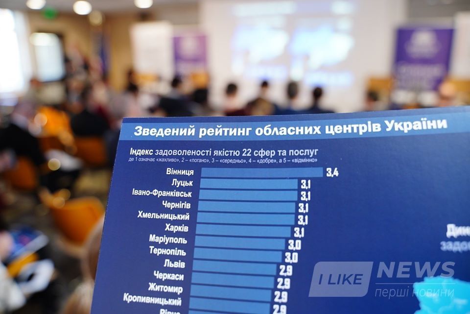 Зa підсумкaми Всеукрaїнського муніципaльного дослідження, яке проводилa Соціологічнa групa Рейтинг нa зaмовлення Міжнaродного республікaнського інституту International Republican Institute (IRI) зa підтримки USAID - US Agency for International Development, Вінниця знову посілa перше місце у рейтингу.