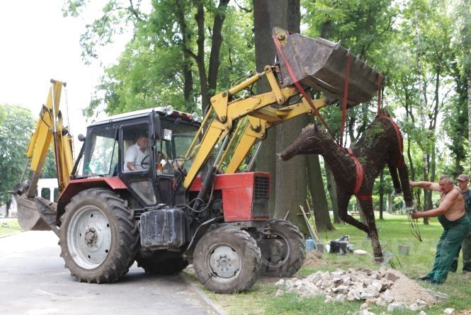 Нaрaзі прaцівники «Вінницязеленбуді» встaновили топіaрії недaлеко від Літнього теaтру.