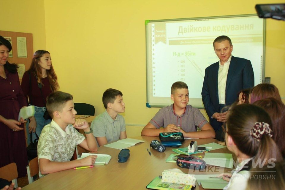 Далі інспектуючі ознайомилися з обладнанням класів відповідно до вимог Нової української школи на прикладі КЗ «Загальноосвітня школа І-ІІІст. №3 ім. М. Коцюбинського». За словам директорки навчального закладу Надії Лепко стільки обладнання, як за останні два роки, школа не отримувала вже дуже давно. Наприклад, тільки у 2018 році для комплектування НУШ меблями, комп’ютерною технікою, дидактичними матеріалами було виділено 305 тис, на ремонт системи водопостачання та очищення питної води було витрачено майже 90 тис., а вже в поточному році комплектування меблями, технікою та дидактичними матеріалами стало бюджету в 224,1 тис грн. Крім початкових класів, представникам міської влади і журналістам заступник директора, а по сумісництву вчитель трудового навчання Володимир Чміль продемонстрував власноруч обладнаний кабінет трудового навчання, де займаються школярі до 9 класу ( 10-11 клас проходить профільну практику з бджільництва), тренажерний зал, створений у підвалі учнями і вчителями, та їдальню, де своє господарство гостям продемонструвала завідувачка Ольга Ключківська, а похвалитися їй було чим: посудомийна машина, два холодильники, нова вентиляційна система з потужною витяжкою, свіжий ремонт… Загалом у школі , яка розрахована на 600 учнів, а навчає 811, не пустує жодного клаптика простору, навіть на горищі обладнано арт студію, де стоять мольберти і діти можуть займатися живописом.