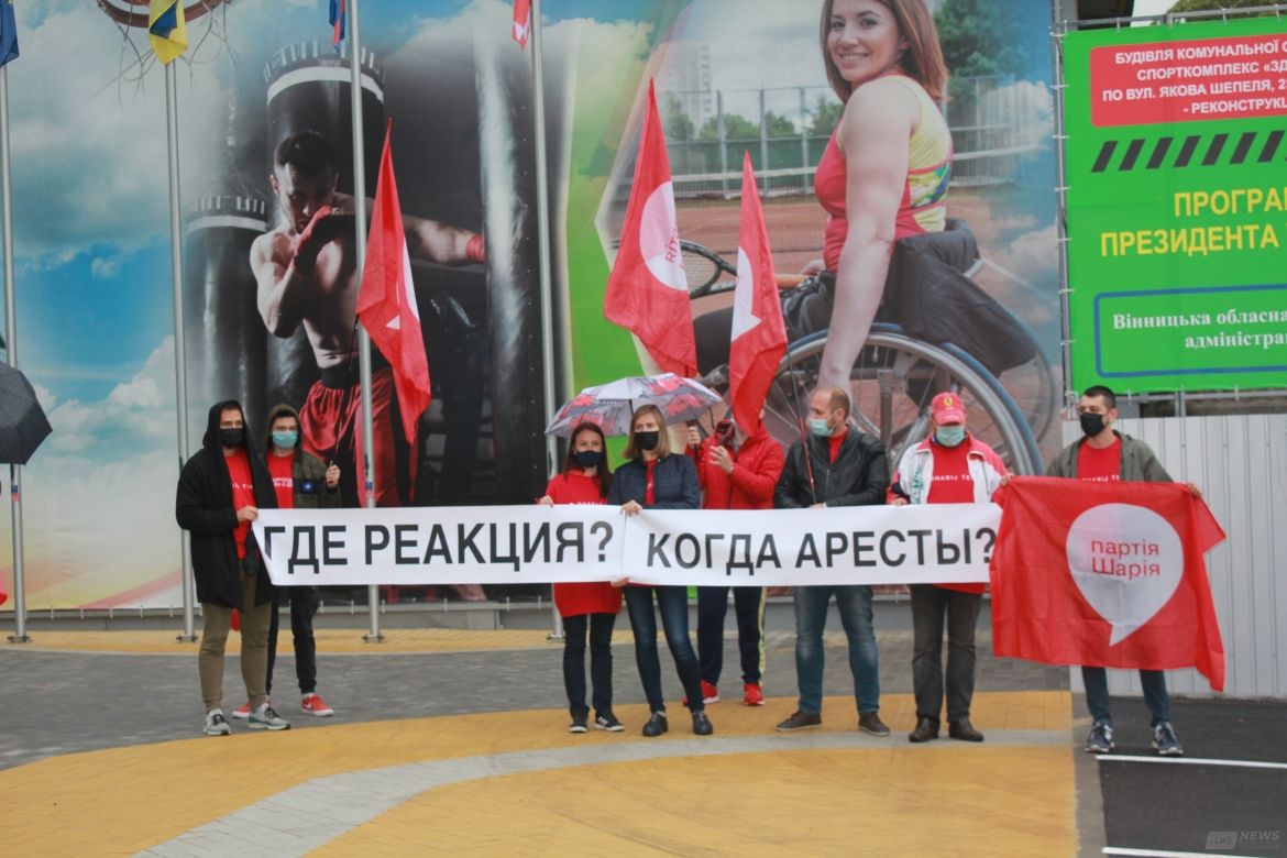 На вході в спорткомплекс Гаранта чекав нечисленний пікет прибічників однієї політсили з нехитрими плакатами «Де реакція» та «Коли арешти?», але дощ завадив їм повноцінно проявитися.