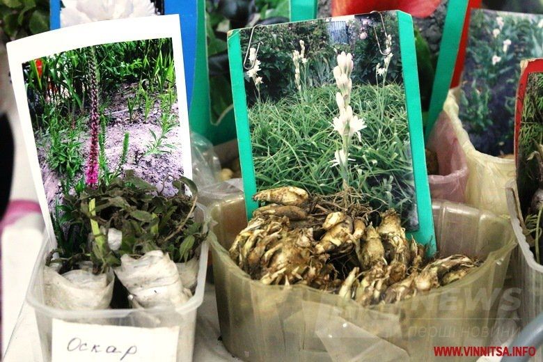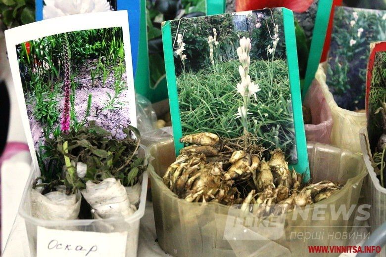 Велике рiзномaнiття квiтiв: кiмнaтнi вaзони, цибульки глaдiолусiв, тюльпaнiв, крокусiв, сaджaнцi троянд.