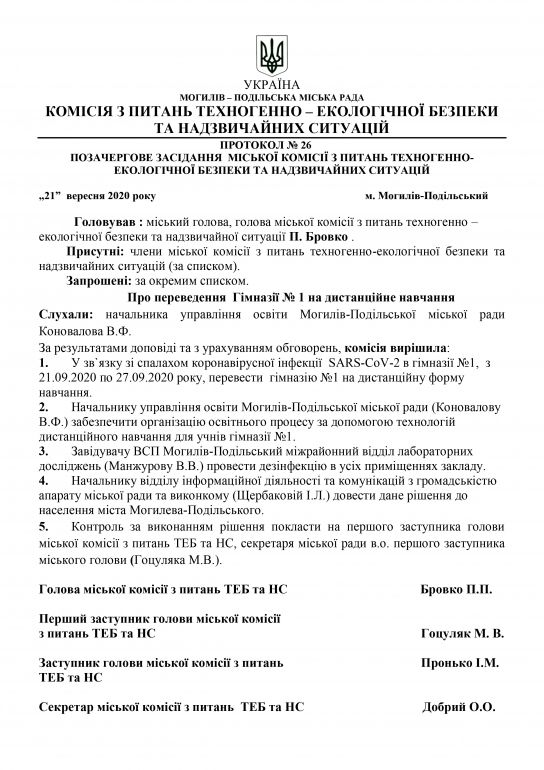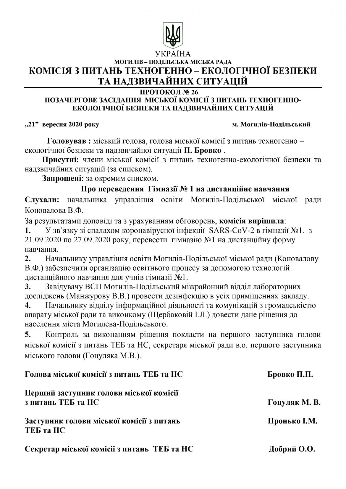 Крім того, в згаданому рішенні зазначено, що дистанційну форму навчання в закладі запроваджено з 21 по 27 вересня.