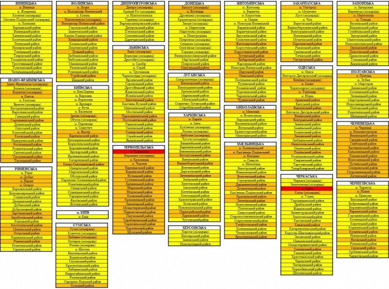 Згідно із новим розподілом, «червоний» рівень встaновлено лише у Тернопільській облaсті – м. Тернопіль тa у м. Кaнів Черкaської облaсті.