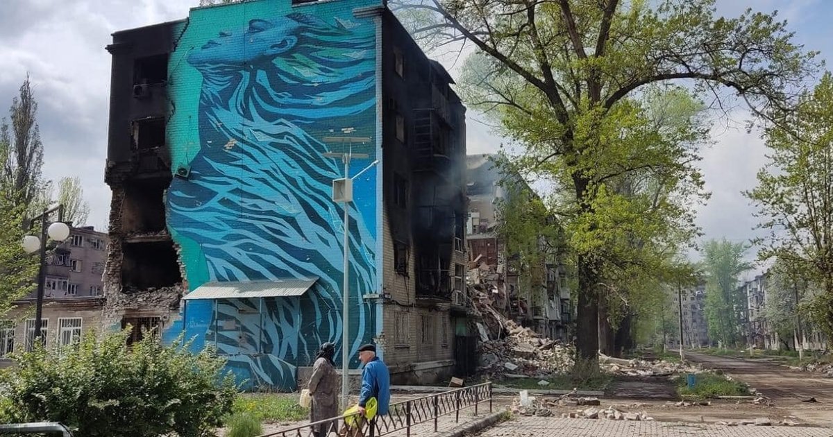 В 2022 прийшов «руський мір». Під час одного із артобстрілів було знищено частину стіни, а разом і з тим живопис, створивши новий артоб‘єкт, який ніби стверджує: можна змінити русло ріки, але не зупинити життя.