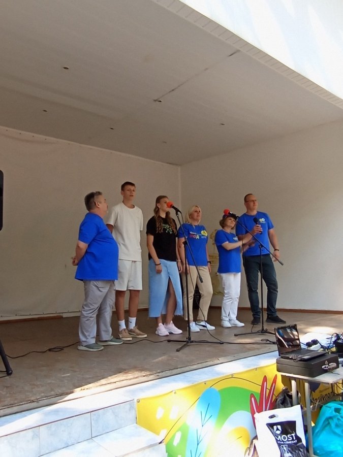 Колектив художньої самодіяльності вінницького підприємства незрячих завітав до табору відпочинку «Я-Маріуполь. Родина». Як відомо, там оздоровлюються мами із дітьми, вимушені переселенці із окупованого міста. Артисти підготували нестандартну концертну програму «Хай в мирному небі літають птахи». Вона була складена з урахуванням вікової категорії слухачів.