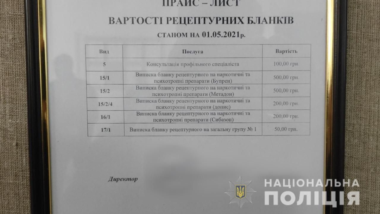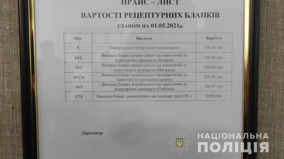 Встановлено, що троє працівників приватної наркологічної клініки – 46-річна одеситка та двоє чоловіків з Донеччини й Чернігівщини віком 44-х та 30-ти років – під виглядом надання допомоги наркозалежним людям незаконно видавали рецепти на наркотичні лікарські засоби, що містили метадон та бупренорфін громадянам без обстеження та встановлення діагнозу «наркоманія».