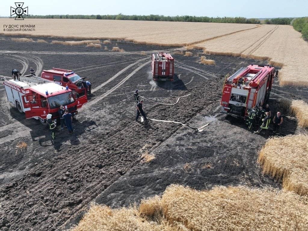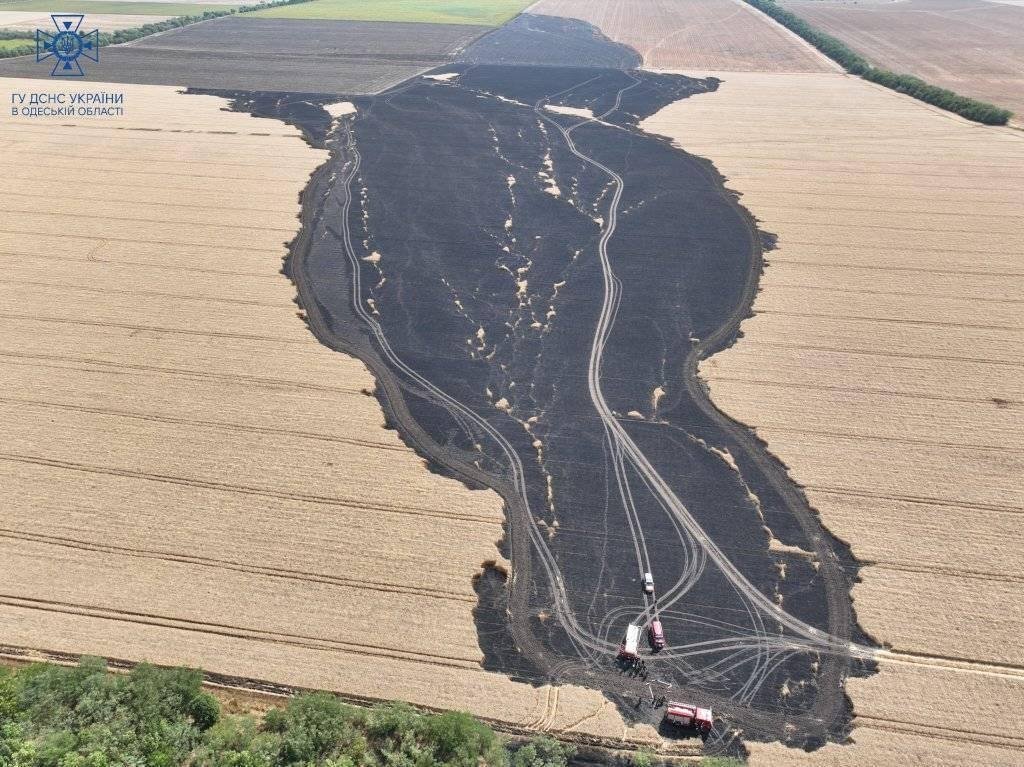 Повідомляється, що в Одеській області в результаті пожежі було знищено 10 гектарів поля з пшеницею. За даними Державної служби з надзвичайних ситуацій (ДСНС), рятувальникам знадобилося дві години, щоб приборкати вогонь.