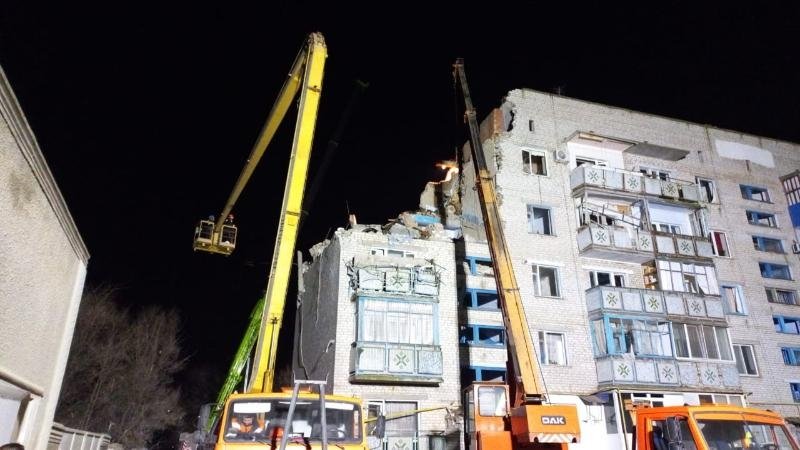 До розбору зруйнованої будівлі залучили два крани, кінологічну групу, 211 осіб особового складу ДСНС та 44 одиниці техніки.