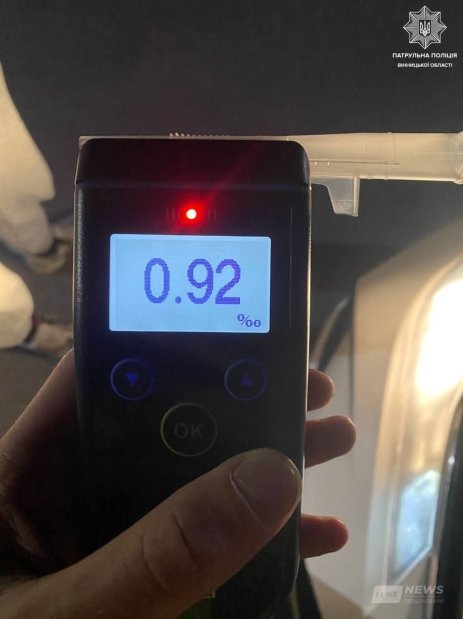 Патрульні запропонували пройти огляд за допомогою алкотестера Drager. Результат — 0,92 проміле алкоголю в крові, що майже у п’ять разів перевищує допустиму норму.