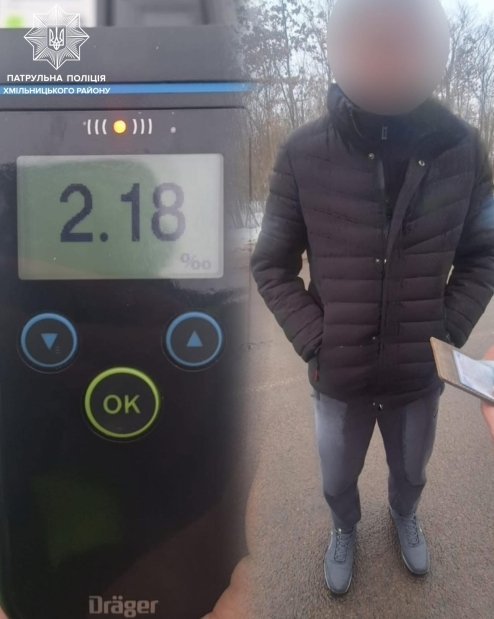 Спілкуючись із 39-річним керманичем, інспектори помітили характерні ознаки вживання алкоголю. Чоловік погодився пройти огляд за допомогою алкотесту «Драгер», який показав позитивний результат — 2,18 проміле алкоголю.