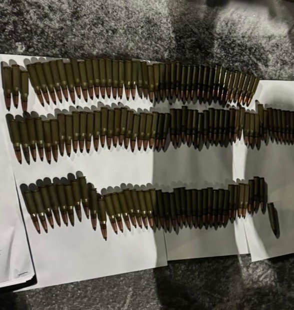 У багажному відсіку, під особистими речами, в коробці з-під елітного алкогольного напою знаходилися 140 предметів, схожих на бойові набої калібру 5,45×39 мм, та один — калібру 9×39 мм. Огляд проводився із залученням службового собаки.