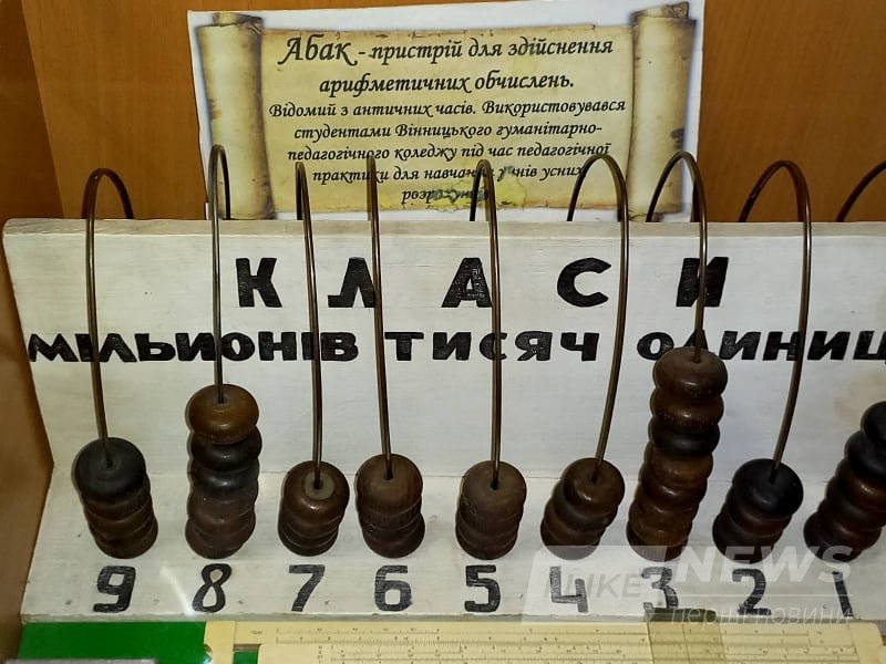 В експозиції широко представлені також учнівські зошити, щоденники, рахівниці – від саморобних, виготовлених з квасолі до більш сучасних, які навряд чи зможуть стати у нагоді сучасним школярам.
