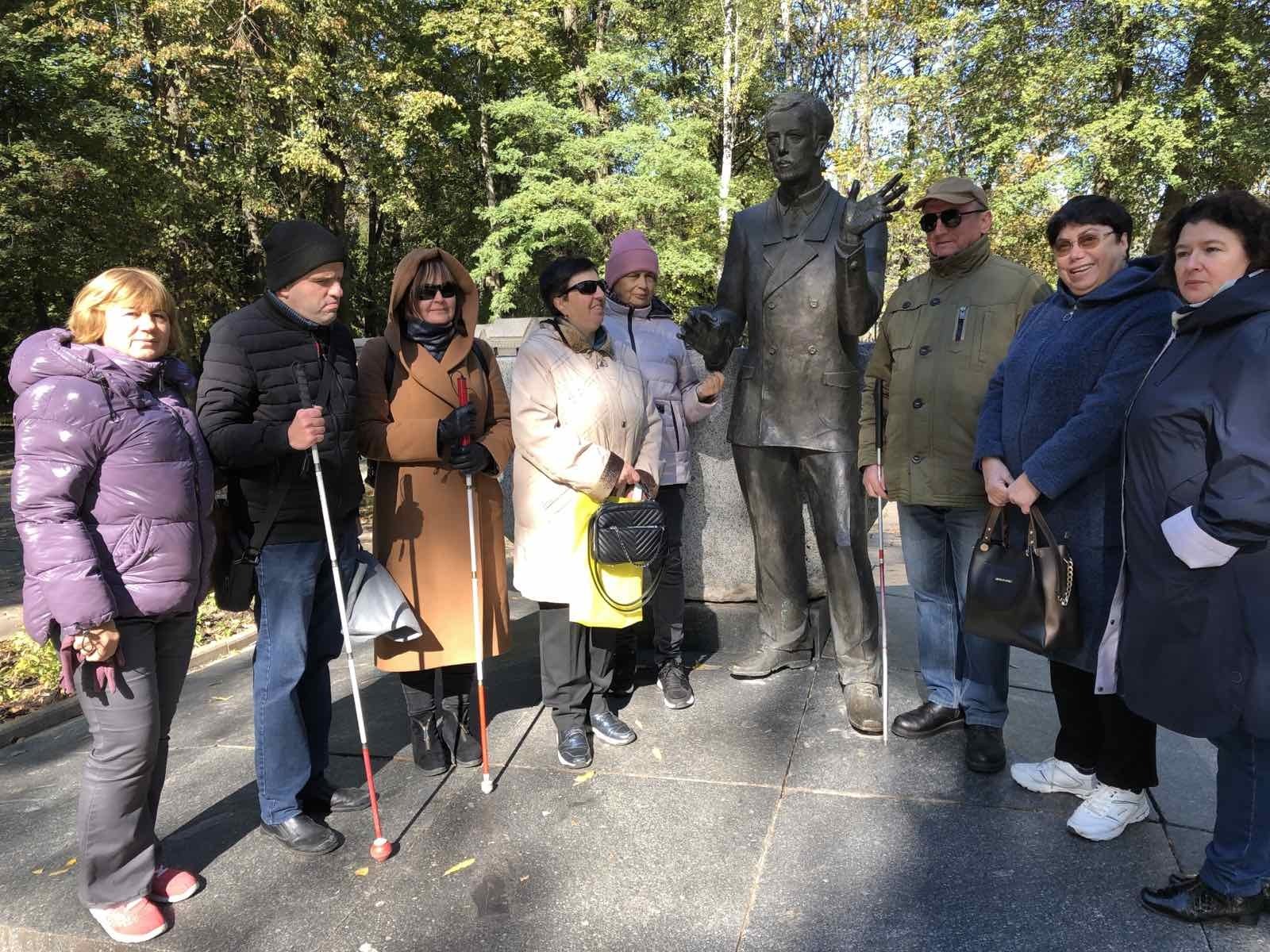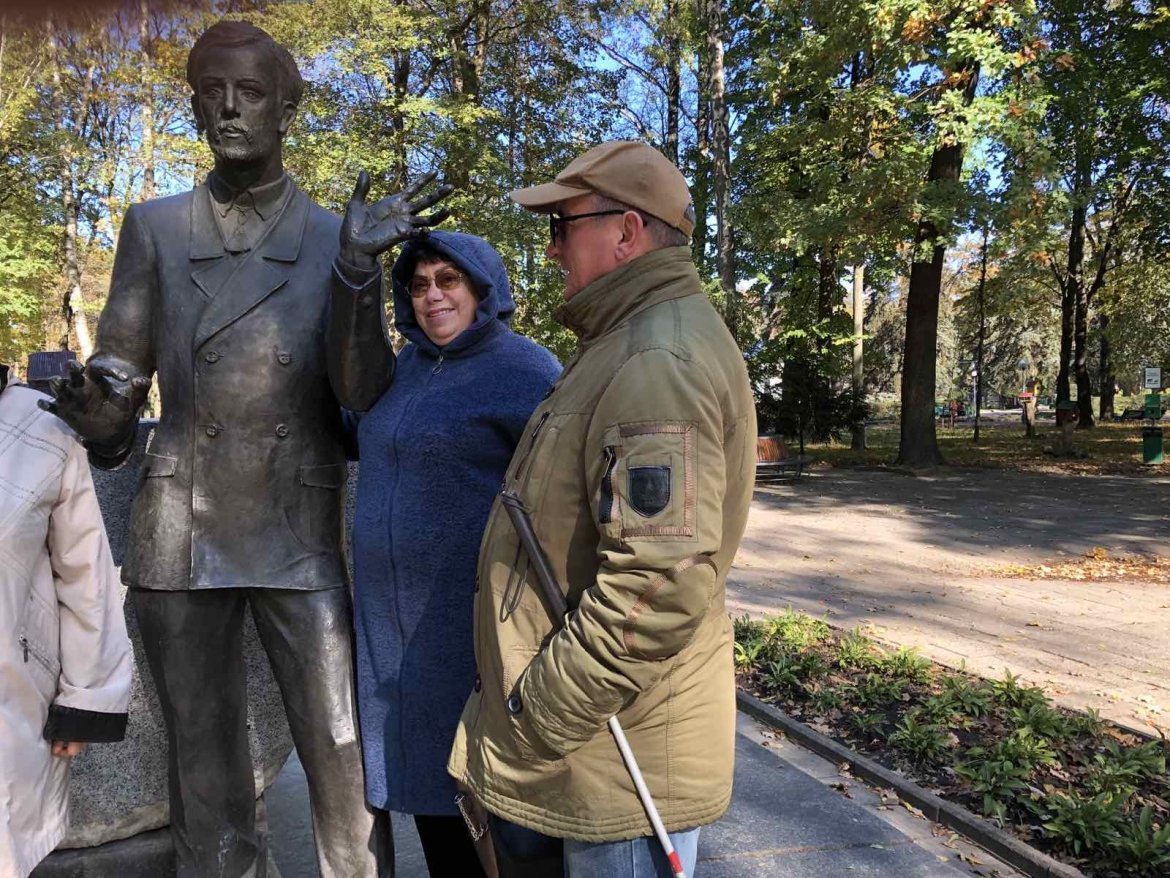 — Частина учасників екскурсії обрала собі улюблену особистість, представлену на Алеї, і розповідала всім про неї. Інформацію збирали за допомогою «Ютубу» тощо. Приміром, я нагадала про біографію Миколи Леонтовича, Оксана Перепелична — про Миколу Коцюбинського, Неля Кривецька - про поета Миколу Некрасова, який народився у Немирові тощо, — каже Наталя Слюсарчук. — Розповіді про відомих вінничан супроводжувалися тифлокоментарями. Тобто зрячі ведучі пояснювали слабозорим особливості рис письменників.