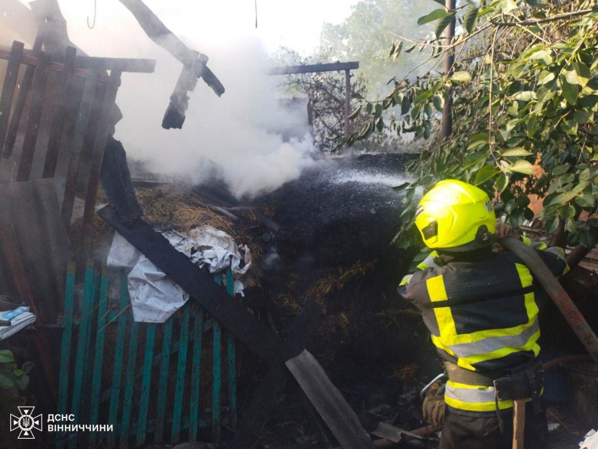 Коротке замикання електромережі спричинило пожежу в господарчій будівлі села Кущинці Гайсинської громади. Там, знищено шиферне перекриття будівлі на площі 30 кв м та 6 тонн сіна.