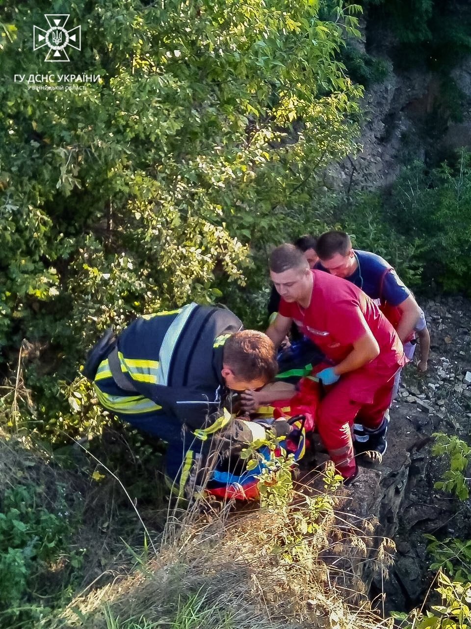 За допомогою спеціального обладнання бійці ДСНС транспортували хлопця до автомобіля екстреної медичної допомоги та передали його лікарям. Наразі постраждалий перебуває у місцевій лікарні. За попередніми даними, хлопець впав у кар'єр з власної необережності.