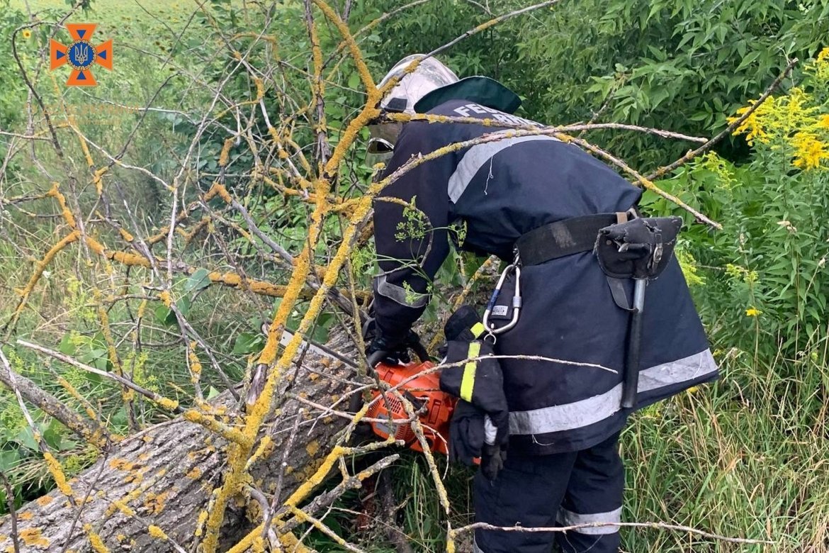 Прибувши на виклики, бійці ДСНС розкряжували стовбури дерев, прибравши гілля з проїжджих частин доріг та відірвану бляху.