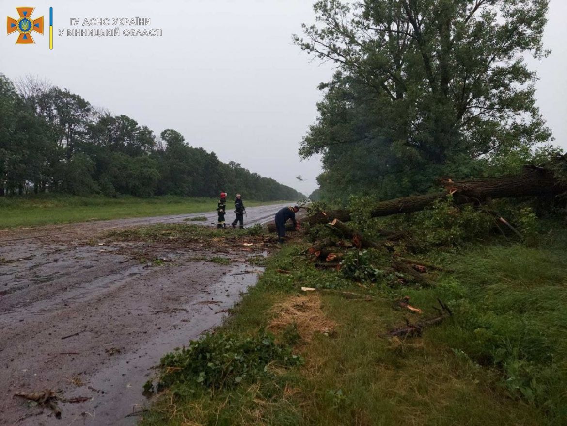 У суботу в другій половині дня на Вінниччині добряче похазяйнувала негода: вітер валив дерева на дороги та автомобілі, а вода підтоплювала подвір’я й городи. Про це повідомляє пресслужба ГУ ДСЕС в області.