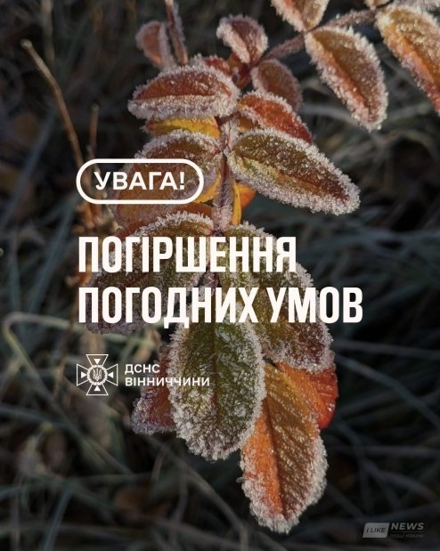 Також вінничанам радять тепліше вдягатися вранці та дотримуватися обережності під час пересування дорогами, адже можливе утворення слизької поверхні.