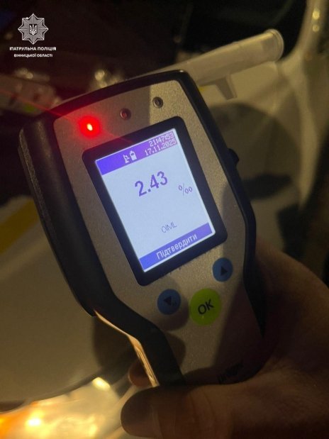 Результат огляду підтвердив підозри — 2,43 проміле алкоголю в організмі.