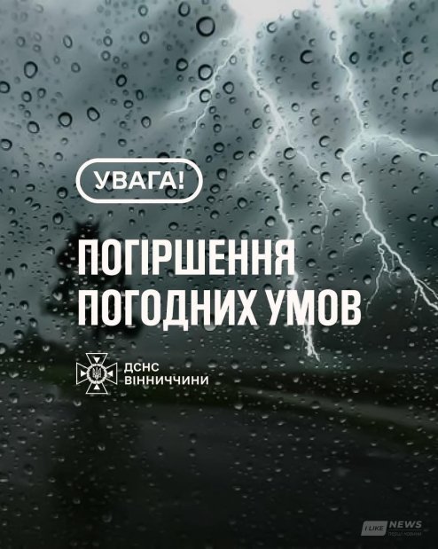 Синоптики попереджають про погіршення погодних умов на Вінниччині — в суботу, 18 травня, в області очікується гроза.