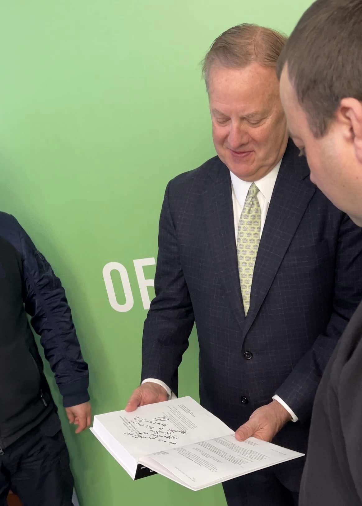 Начальник Вінницької ОВА Сергій Борзов під час зустрічі з очільником делегації «Baker Global Advisory» Дугласом Бейкером підписав та передав нове видання про Голодомор 1932-1933 років на Вінниччині для його батька – відомого американського політичного діяча Джеймса Бейкера. Про це йдеться на сторінці голови ОВА.